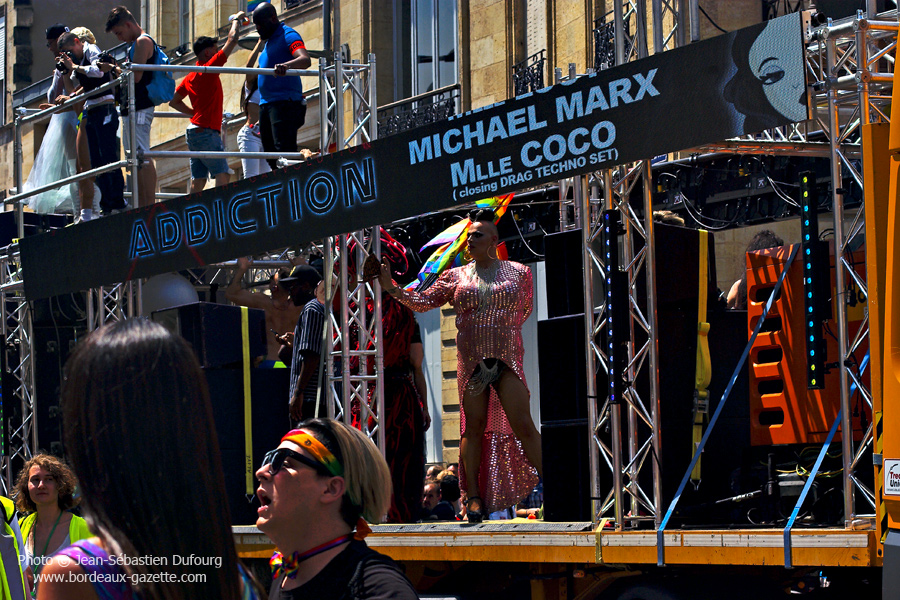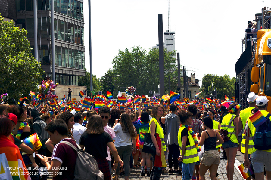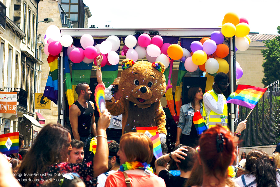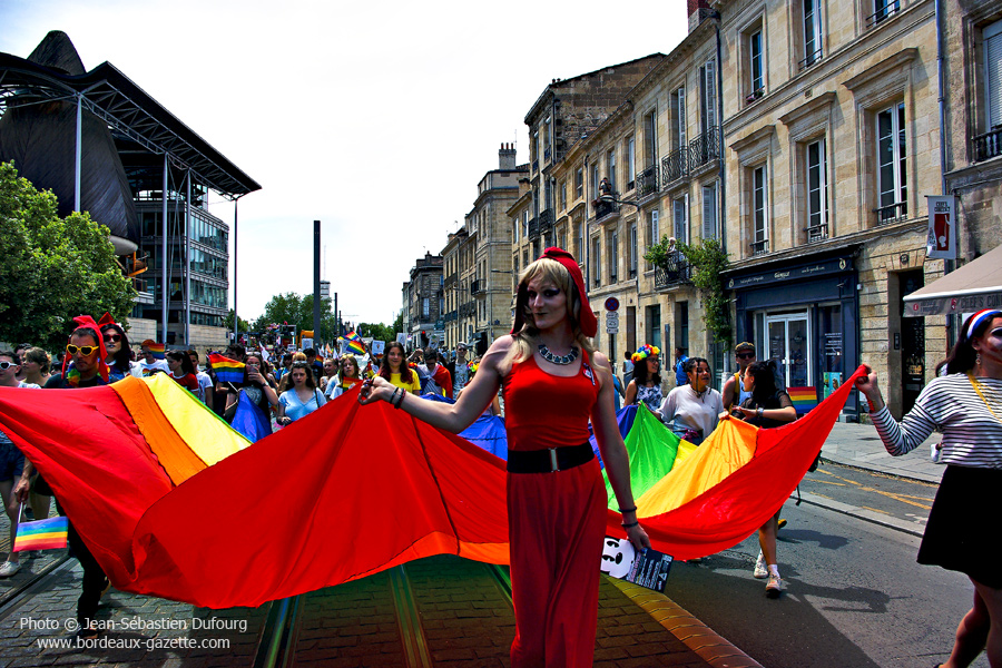 C’est ce samedi 2 juin que s’est déroulée la traditionnelle Marche des Fiertés de Bordeaux. Le mot d’ordre pour cette 22ème édition : "Liberté, Égalité, Fraternité, pour toutes et tous, ça s’apprend". La parade s’est élancée Place de la République, Rue des Frères Bonie pour un moment de commémoration avec dépôt de gerbe au nom des déportés LGBT, pour poursuivre ensuite cours d’Albret, cours Aristide Brian et enfin jusqu’à la Place de la Victoire où était installé le village associatif.