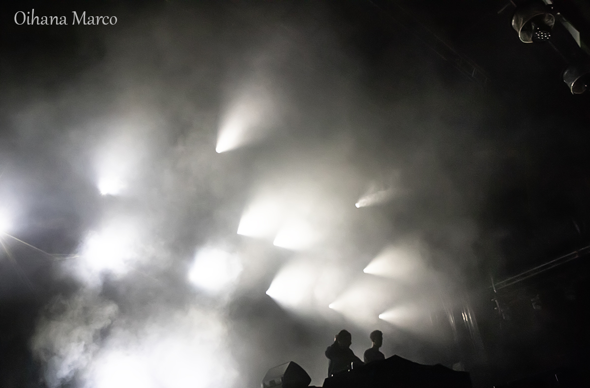 Le moment « retour au bercail » arrive à 21 h 30 avec Odezenne. On sent d’emblée l’ancrage bordelais : clins d’œil, sourires complices. Leur esthétique entre parlés désabusés, poésies au brouillard épais et électro sous haute tension s’épanouit dans la nuit qui tombe. Une fan, les yeux brillants, nous confie les suivre depuis plus de dix ans et connaître « tous les morceaux ». Le titre « Je veux te baiser » déclenche un chœur paradoxalement tendre, entre rires et frissons ; la référence à Twin Peaks et à Angelo Badalamenti flotte dans les synthés hypnotiques. « On est à la maison », glissent-ils entre deux titres, et le public répond par une ovation qui résonne jusque dans les arbres.