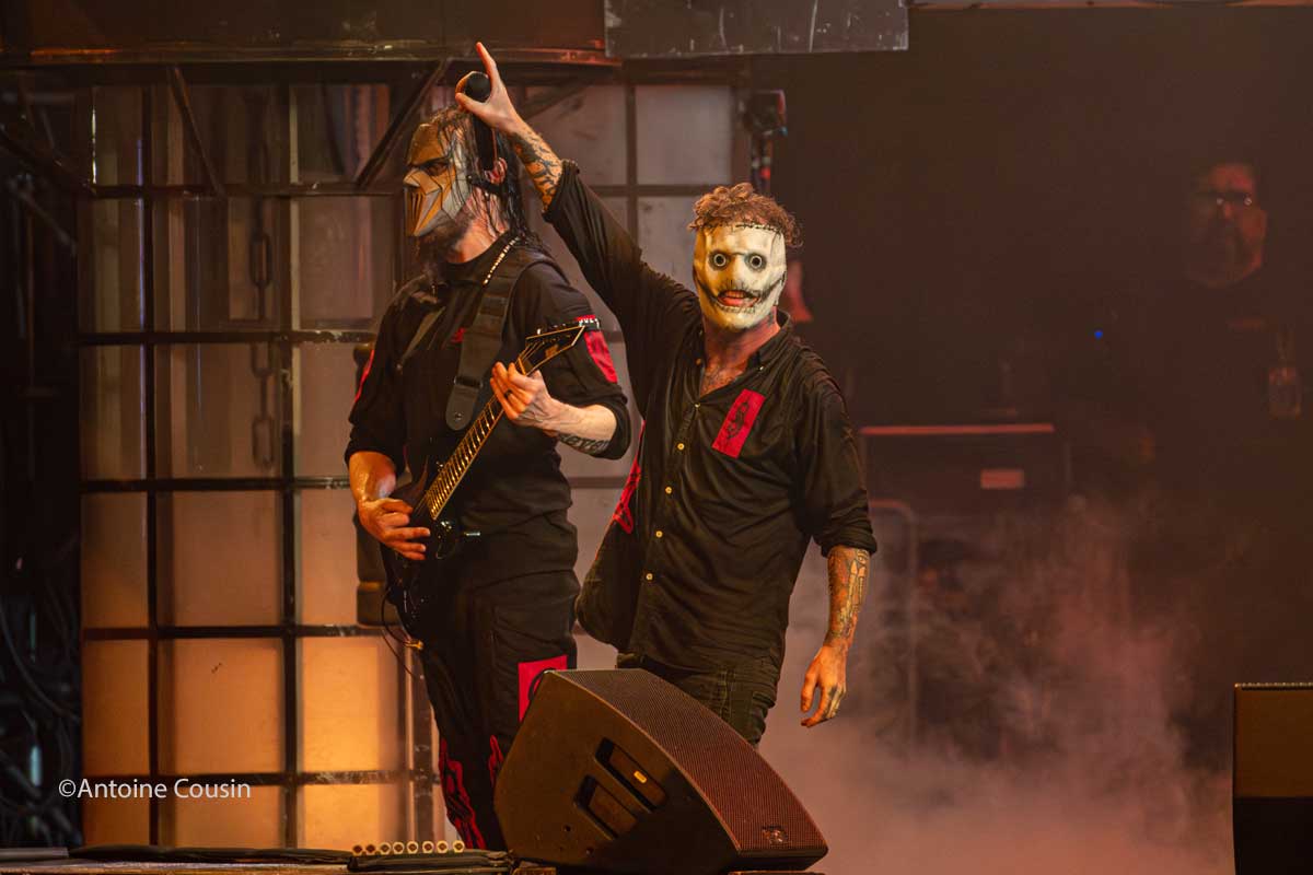 Dernier concert et pas des moindres, Slipknot, l’hydre à neuf têtes masquées qui a assommé de son nu métal, les milliers de personnes venues en nombre pour assister à leur représentation. La bande de Corey Taylor et Shawn Crahan a montré une fois de plus qu’ils font partie de la cour des grands et méritent leur statut de tête d’affiche.