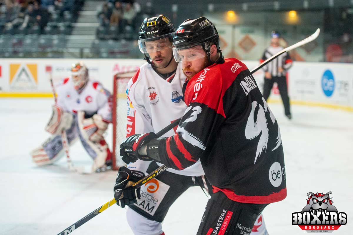 Avec un premier tiers temps où ils ont semblé inexistants, peut être à cause de la débauche d’énergie produite à Nice et à Grenoble, les Boxers ont eu du mal à se trouver devant les deux milles spectateurs présents pour cette rencontre de milieu de semaine. Leur attaque est étrangement muette à Bordeaux alors qu’en deux matchs entre Nice et Grenoble, ils ont marqué dix buts et on se demande à quoi cela peut-il bien tenir. Il aura fallu attendre cinquante deux minutes pour voir le premier tir victorieux de Félix-Antoine Poulin pour les Boxers alors qu’ils étaient menés deux à zéro depuis un grand moment mais les amiénois se remettaient rapidement à l’abri et la seconde marque de Loïk Poudrier arrivait trop tard pour pouvoir espérer obtenir le nul. La dernière minute jouée avec 6 joueurs de champ avec cage vide sera improductive et les Boxers ne décollent pas de cette huitième place. A noter la belle partie du portier d’Amiens Henri-Corentin Buysse qui a su protéger sa cage ce qui lui a valu une étoile et c’est peut être la raison de l’échec des Boxers. Espérons que ce soir à Angers à l’Ice Parc ils auront plus de réussite avant de revenir à Mériadeck, dimanche après-midi.