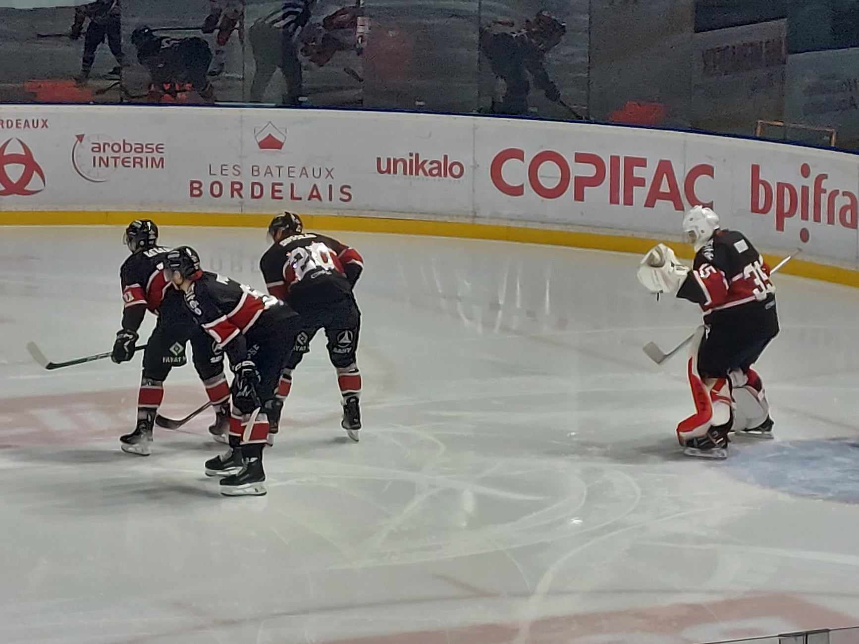 Les Bordelais avaient bien en tête leurs conditions de victoire sur cette rencontre. Parvenir à briser le rempart Pintaric, qui avait privé Bordeaux d’un titre de champion de France l’année dernière avec Rouen, et tenir bon en défense face à la meilleure attaque du championnat. Pour cela, Victor Bodin se trouvait titulaire aux cages, avec l’espoir qu’il sorte une performance digne de son premier match de la demi-finale 2023-2024. Ses efforts et ceux de ses coéquipiers en premier tier-temps, ne seront pas récompensés. Avec deux supériorités mal exploitées et quelques erreurs défensives, Bordeaux craque à une seconde de la fin du premier tier-temps, sur une contre-attaque dans laquelle la défense n’y est pas. Le buzzer sonne, les Boxers sont derrière. Mais Bordeaux n’abandonne pas et se reprend en deuxième tier-temps. Les joueurs Grenoblois essayent de provoquer l’escouade rouge et noire, et au lieu de ça, lui redonne de l’énergie et de l’espoir. Il faut attendre quelques minutes pour que Rudolf Polcs lance une offensive d’un grand pont sur son défenseur, avant de transitionner le palet vers Valtonen et Prissaint, qui se chargent de remettre la partie à égalité. Mais une fois encore, les errances Bordelaises permettent aux Bruleurs de Loups de repasser devant, avec un but de Guillaume Leclerc, qui inscrit un doublé.