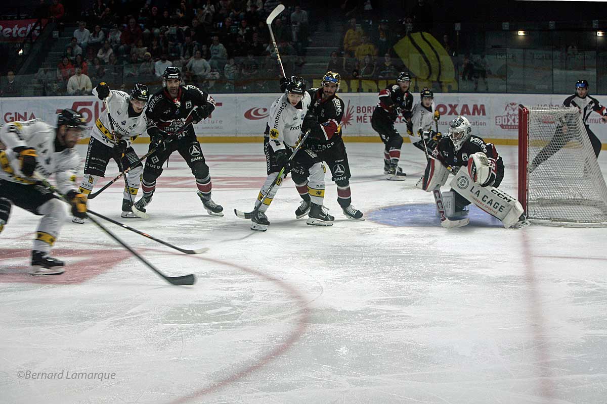 Un choc attendu par tous les fans de rouge et noir, qui démarre lentement. Les deux équipes se jaugent sur les premières possessions, et Rouen met très vite la pression à Quentin Papillon. Mais le portier fait honneur à ses 93,29% d’arrêt cette saison (n1 en Ligue Magnus). Il rattrape les erreurs de sa défense et permet aux Bordelais de faire jeu égal avec des Rouennais venus retrouver les mêmes sensations qu’en avril dernier. Les Boxers devront attendre leur première supériorité sur une projection de Jordan Hervé pour commencer à installer leur jeu. Malheureusement, le bloc défensif Rouennais est bien en place et les attaques girondines restent vaines. Les dragons sont venus proposer une confrontation que Bordeaux n’a pas vécue depuis la première journée, face aux Spartiates. Rouen attaque mieux et défend mieux que tout ce que les Boxers ont pu affronter cette saison. Bordeaux s’en sort de peu sur quelques actions et n’arrive pas à concrétiser ses opportunités, à l’image d’Oskari Setanen qui arrête deux face-à-face dans le tier-temps. Le portier finlandais termine la rencontre avec 41 arrêts et un énorme impact dans le résultat final.