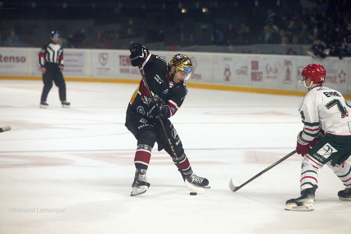 Le 3 novembre dernier, l’Anglet Hormadi était venu s’imposer sur le fil en prolongation, après une rencontre où les Bordelais avaient alterné malchance et déconcentration. Un mois après, le groupe de Rémi Perronard, remplaçant Olivier Dimet avec les U20 de l’équipe de France, comptait bien prendre sa revanche et consolider sa place sur le podium de la Ligue Magnus. Le tout, devant une patinoire Mériadeck encore pleine à craquer.