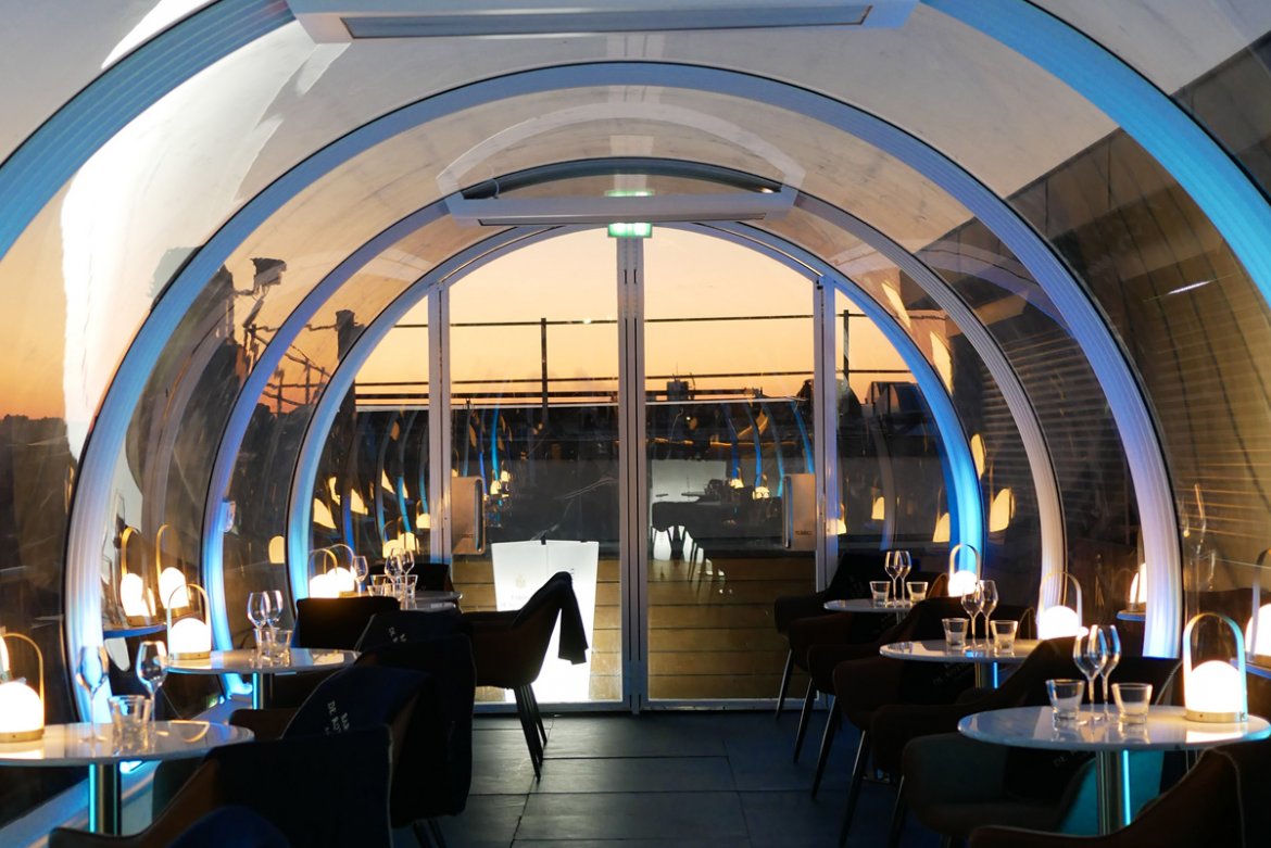 Accessible depuis le 1er novembre 2024 et jusqu’au 31 mars 2025, cet espace éphémère s’ouvre sur une vue imprenable des toits bordelais. Installé sur la terrasse vitrée du Grand Hôtel, ce bar offre un cadre idéal pour profiter des soirées hivernales en toute tranquillité, loin de l’agitation urbaine.