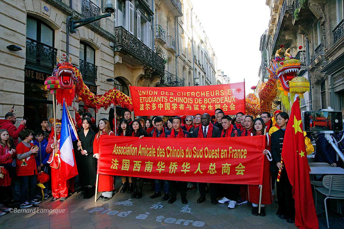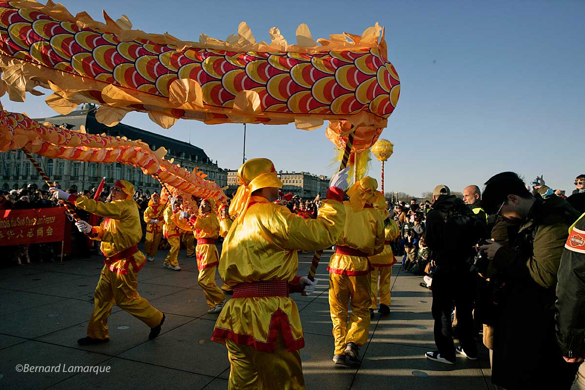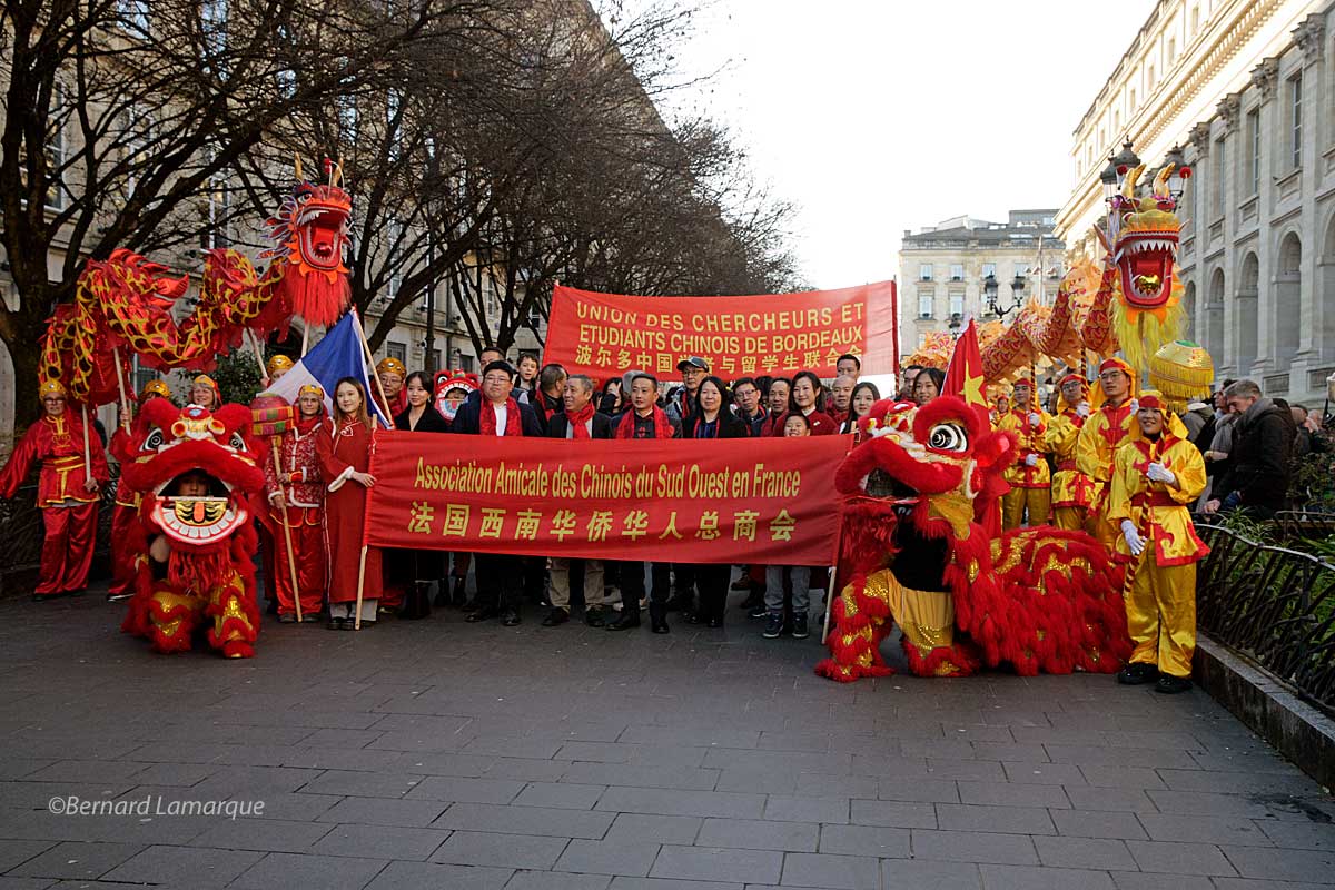 Chaque année, il y a un petit quelque chose en plus pour ce cortège du Nouvel An Chinois qui cette année a déambulé de la Victoire qui reste son point de départ incontournable au Miroir d’eau qui lui a offert une magnifique esplanade pour son final de cette année, celui de l’an passé place Gambetta était dans un espace un peu contraint.