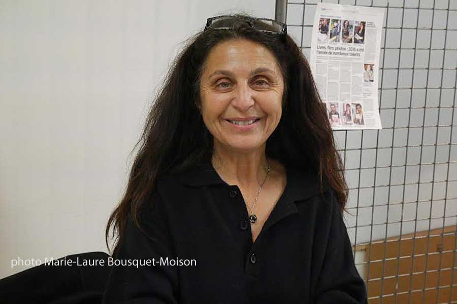 Un peu plus loin, je rejoins une femme fragile au regard à la Magnani. C’est « Modvareil » elle est l’auteure de poésies et d’une autobiographie qui se décline en trois tomes. J’imagine les péripéties et les blessures endurées.