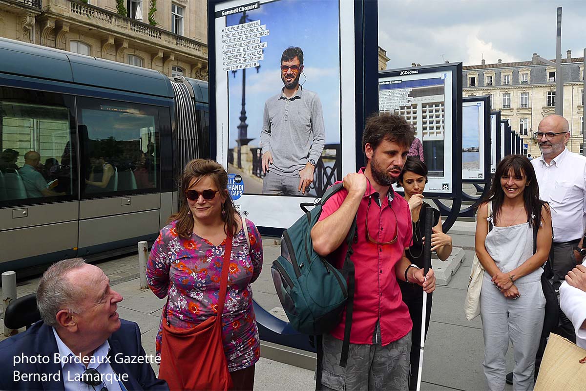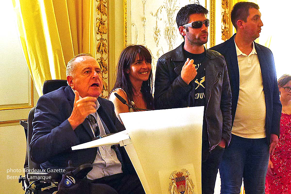Anne-Sophie Annese a déjà travaillé de nombreuse fois pour la mairie de Bordeaux et elle s’est, si l’on peut l’exprimer ainsi, spécialisée dans la photo humaine et sociale et c’est à l’aune de cette pratique qu’elle a été choisie pour effectuer ce reportage de "mariage" entre des personnes particulières et leur ville. Le projet a été piloté par Catherine Beaufort-Lancelin chargée du handicap et de l’ingénierie sociale à la mairie de Bordeaux et Joêl Solari est très satisfait de la qualité de la réalisation de cette exposition qui sera visible jusqu’au 6 juin. En clôture de cette déambulation, le cortège s’est dirigé vers la mairie ou après un bref discours Joël Solari a remis la médaille de Bordeaux de la part d’Alain Juppé à Gregory Mouyen le marathonien hémiplégique qui a couru cette année son troisième marathon des sables en compagnie de son père. Une terrible épreuve qui laisserait beaucoup de sportifs même aguerris en panne.