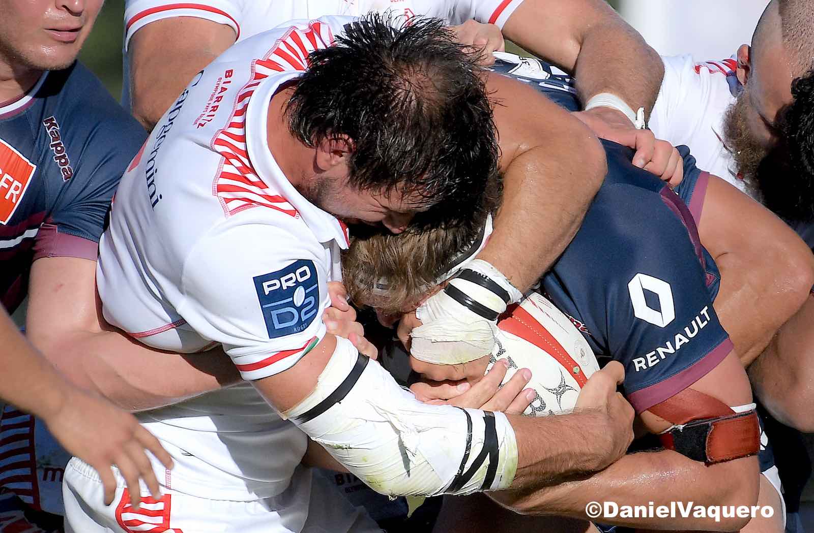 Les biarrots ne baissaient pourtant pas les bras et allaient être récompensés en marquant leur premier essai par Bastien suite à plusieurs pénalités obtenues dans les dix mètres adverses (14/7 30eme). Mais bien vite l’UBB investissait à nouveau le camp basque et marquait juste avant la pause son troisième essai par Fuatai. (21/7 40eme).