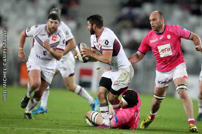 Après une série sans victoire l’Union devait absolument prendre les points pour pouvoir espérer envisager de revenir dans le Top 6 tout en espérant aussi pouvoir profiter des scores de ses adversaires dans les autres matchs. L’idéal étant de prendre le bonus offensif et ce bonus offensif un moment ils l’ont acquis en première période et ils ont tourné à la mi-temps avec un score flatteur de 25 à 6 mais il n’ont pas su le conserver. C’est dans un Matmut Atlantique pas très bien rempli que Steyn donne le coup d’envoi de cette partie qui démarre très vite avec les parisiens qui ouvrent très rapidement le score avec les locaux qui répondent rapidement mais les visiteurs reprennent l’avantage quelques minutes après et il ne faut pas trop attendre pour voir sur un bon lancement de jeu un service de Dubié qui envoie Ashley Cooper à l’essai sur un retour intérieur de ce dernier pour aller aplatir. Le fait de jeu le plus marquant de cette première mi-temps est la faute de Daguin qui propulse le ballon à l’extérieur des limites du terrain pour éviter queTalebula et son équipe prend un essai de pénalité et lui un carton jaune. On sent que les bordelo-béglais veulent livrer un grand match et ils y mettent les ingrédients face à des parisiens qui n’y sont pas trop tant et si bien qu’avec l’essai de Maynadier le Bonus offensif est acquis et que la mi temps arrive sur le score de 25 à 6. Les 24.678 spectateurs sont ravis mais dans le nombre les supporters parisiens sont moins satisfaits. Malgré tout un premier coup de semonce avant la fin de cette période où sur un ballon porté les parisiens franchissent la ligne mais le ballon n’étant pas visible l’essai n’est pas accordé par Mr Cardona