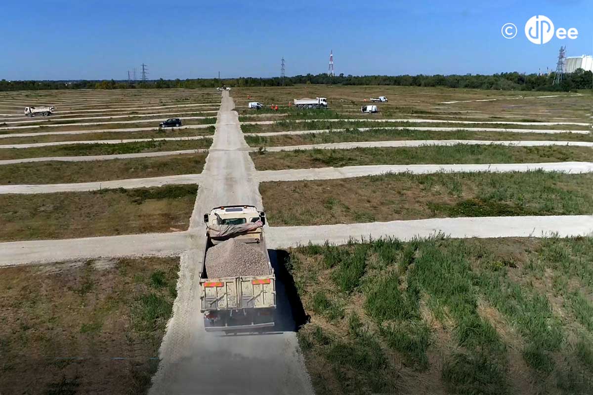 C’est la plus grande centrale européenne photovoltaïque en milieu urbain puisqu’elle est implantée sur le territoire de la ville de Bordeaux avec ces soixante hectares qui vont accueillir tous ces panneaux photovoltaïques permettant de transformer l’énergie lumineuse en courant électrique continu. C’est donc sur une décharge dont on estime qu’elle contient entre 2 et 3 millions de m³ de déchets que la centrale est en cours d’installation. Cette décharge a été réhabilitée entre 2004 et 2009, elle est aujourd’hui recouverte d’un géotextile et d’une couche de terre végétale qui laisse apparaître un enherbement qui reste pauvre et peu fourni.
