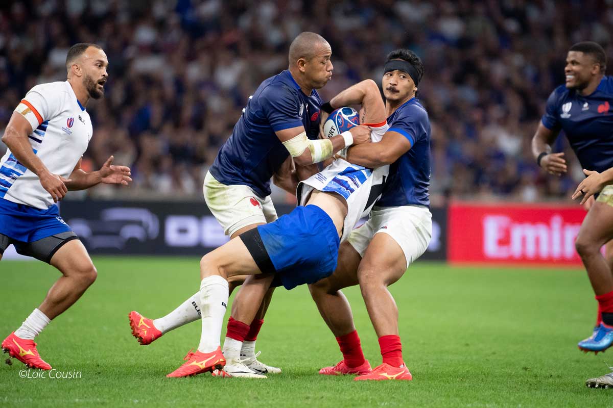 Il y aura aussi un essai refusé de chaque côté avec un pour Couilloud (49ème) alors qu’il aurait pu être son deuxième et le second à la Namibie pour revenir sur la faute commise sur Dupont par Deysel (46ème) qui va devenir rouge après examen avec ce choc à la tête qui provoque des inquiétudes pour la suite au sujet de Dupont. On a pu voir lors de cette soirée une équipe de France en pleine possession de ses moyens et respectant l’adversaire pour lui montrer qui était le plus fort le plus discipliné. La Namibie c’est 33 plaquages manqués et beaucoup trop de fautes car à ce niveau il ne faut pas dépasser les dix fautes dans le jeu mais on ne peut pas accabler la Namibie qui fait avec ses moyens qui sont malheureusement petits et on a déjà de la peine à envisager ce qu’ils vont advenir devant la Nouvelle Zélande. Durant cette coupe du monde on assiste a des gifles mémorables montrant combien le fossé peut être profond entre le haut du panier et les équipes dites de seconde zone mais ne nous y trompons pas ces équipes progressent comme l’Italie qui aujourd’hui a un instant occupé la place de leader dans ce groupe A. dans son ensemble le niveau global du rugby mondial s’élève permettant de voir de belles empoignades.