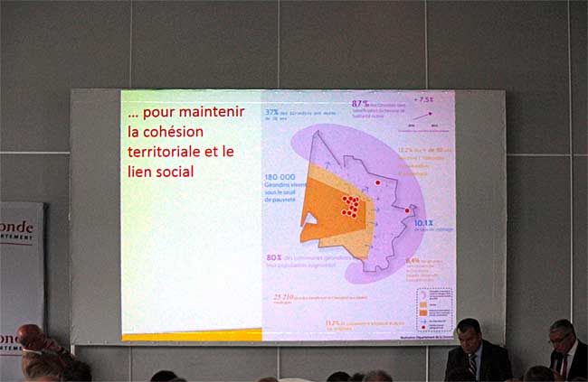 Bernard Castagnet, vice-président chargé de l’attractivité territoriale du développement économique et du tourisme et Frédéric Carre , sous préfet de Langon, chargé du schéma d’accessibilité pour la Préfecture de la Gironde ont présenté le schéma départemental d’amélioration de l’accessibilité des services au public. Ce schéma est un enjeu fort dans une Gironde vaste et attractive car il ne faut pas oublier que la Gironde est le plus grand département métropolitain de France dont la population s’accroit régulièrement, qui veut répondre à quatre objectifs