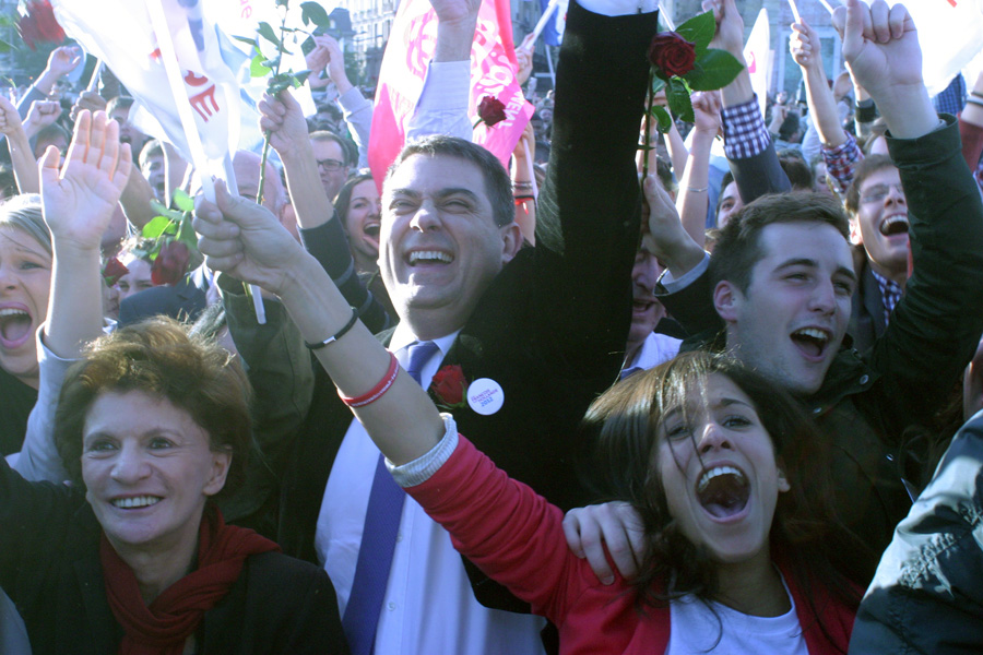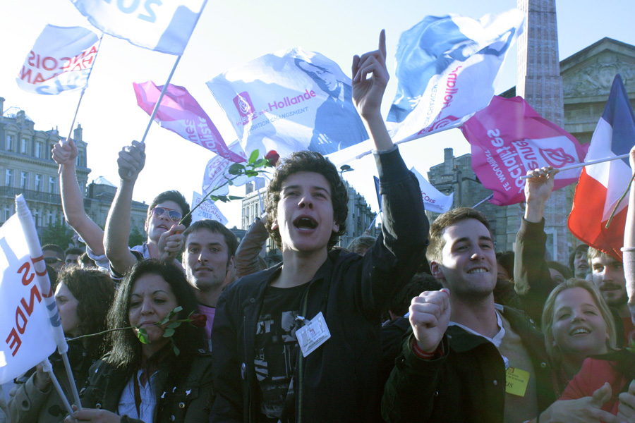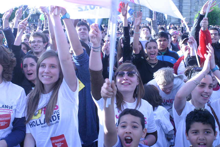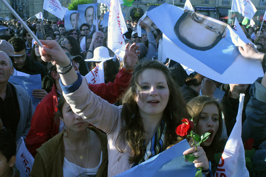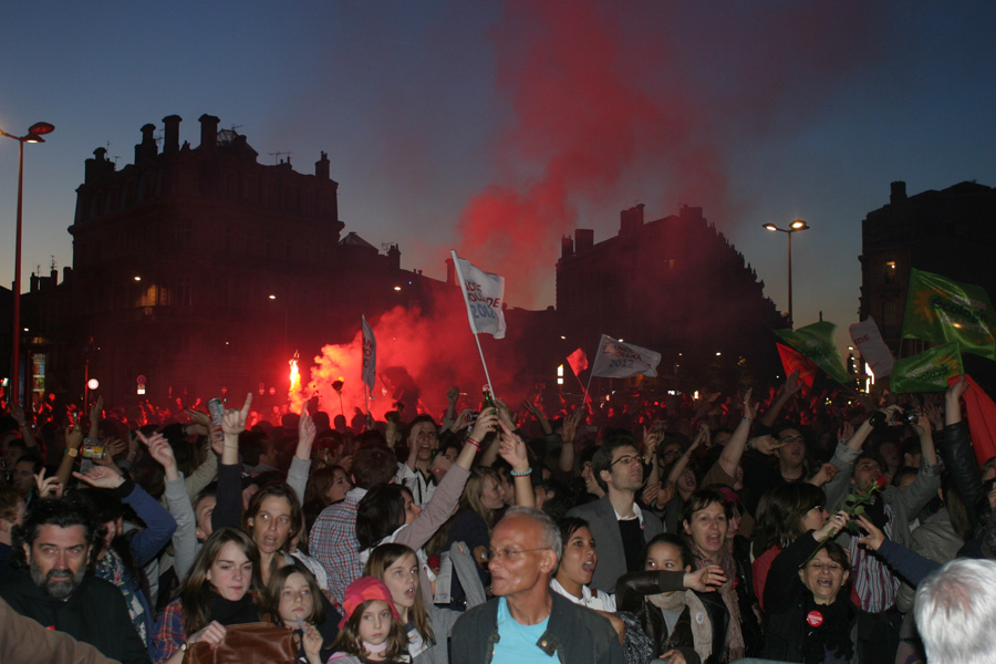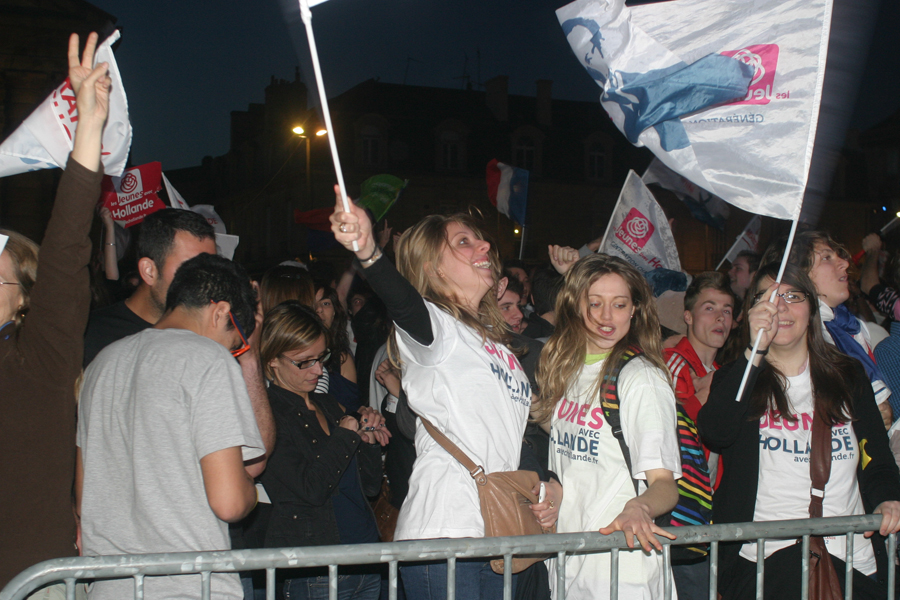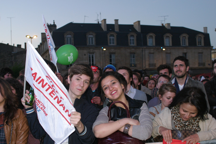 C’est à une véritable explosion de joie, à laquelle on a pu assister, à l’annonce des résultats du second tour de l’élection présidentielle, ce dimanche 6 mai, place de la victoire à Bordeaux. A partir de 18 heure la place s’est remplie doucement pour être noire de monde au moment de l’annonce des résultats.