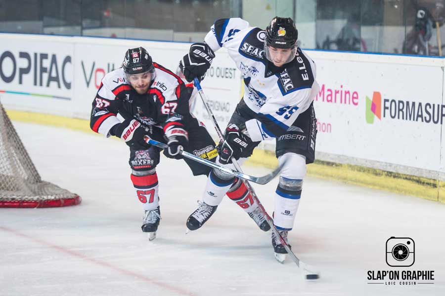 Les Boxers reprennent le troisième tiers en supériorité et réussissent même à profiter enfin de cet avantage grâce de nouveau à un défenseur : Coté assisté de Gilbert et de Cadren (4-1 à 41’28). De beaux arrêts d’Ylonen et de Fouquerel laisseront ce score intact.