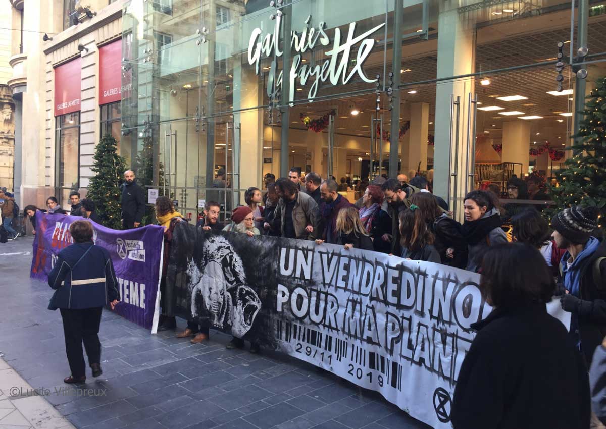 Voguant à contre-courant du mouvement capitaliste, et dans cette démarche plus engagée, la Camif proposait une alternative plus responsable. Ce site de vente par correspondance, qui a décidé de ne pas ouvrir en cette journée de Black Friday, et qui ne proposait aucun produit à la vente durant cette journée, invitait ses clients à reverser l’argent économisé, qu’ils pensaient dépenser, à des associations. A cette occasion et dans cette démarche de refus de participation à cette surconsommation, différents collectifs se sont réunis pour un Block Friday, comptant au total pas moins de 200 participants. L’idée, celle de remplacer le Black Friday par le Block Friday pour dire stop à cette frénésie, stop à l’industrie textile polluante. Un rassemblement qui avait pour but de dénoncer cette journée d’excès et sensibiliser des centaines de passants aux désastres écologiques.