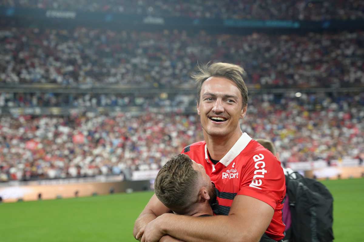 - Alexandre Roumat en rouge et noir, couleurs qui lui permettent de soulever le Brennus.