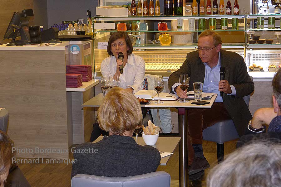 À la tête de ces deux crus depuis 1992, Marie-Laure s’attache à exprimer la personnalité des deux appellations avec cet équilibre entre la puissance et la finesse, bien dans l’esprit bordelais et d’œnologues comme le regretté Denis Dubourdieu. Pas question de faire un de ces vins bodybuildés à la mode des « flying winemakers » et autres gourous. La quarantaine d’amateurs venue à la dégustation de la librairie Féret a pu s’en rendre compte : les 2012 de La Tour de Bessan et de Villegeorge révèlent des vins déjà plaisants tout en possédant un bon potentiel, avec côté tout en finesse pour le margaux avec un bois bien fondu. Puis le magnum de 2000 de Villegeorge a permis de montrer comment l’heure d’ouverture peut jouer sur les arômes : limitée à une heure avant le service celle-ci libère des parfums de fruits noirs bien mûrs ; au bout de trois heures c’est toute la complexité du bouquet qui se révèle en faisant la part belle aux notes de sous-bois. Et dans les deux cas une même conclusion s’impose : au bout de 16 ans, ce grand millésime n’a pas dit son dernier mot. Les échanges autour d’un verre de 2006 qui ont suivi la séance ont confirmé cette impression, comme ils ont prouvé que cette première a été une vraie réussite, que va prolonger jusqu’au jeudi 3 novembre l possibilité de déguster au verre le millésime 2006 de Villegeorge.