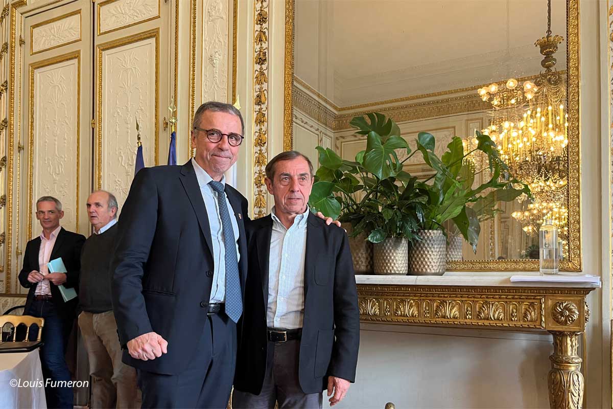 - Pierre Hurmic, maire de Bordeaux et Alain Giresse, joueur emblématique des Girondins
