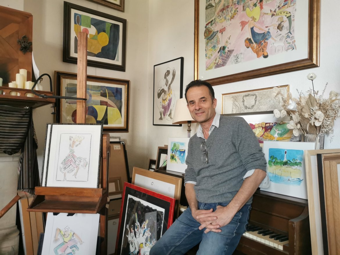Le peintre et illustrateur Arnaud Faugas représente l’histoire et les scènes de la vie bordelaise depuis une quarantaine d’années, et plus récemment sur un papier peint de l’entreprise Isidore Leroy. Une passion qu’il n’a pourtant épousée qu’à 30 ans, après une vie de voyages et d’incertitudes.