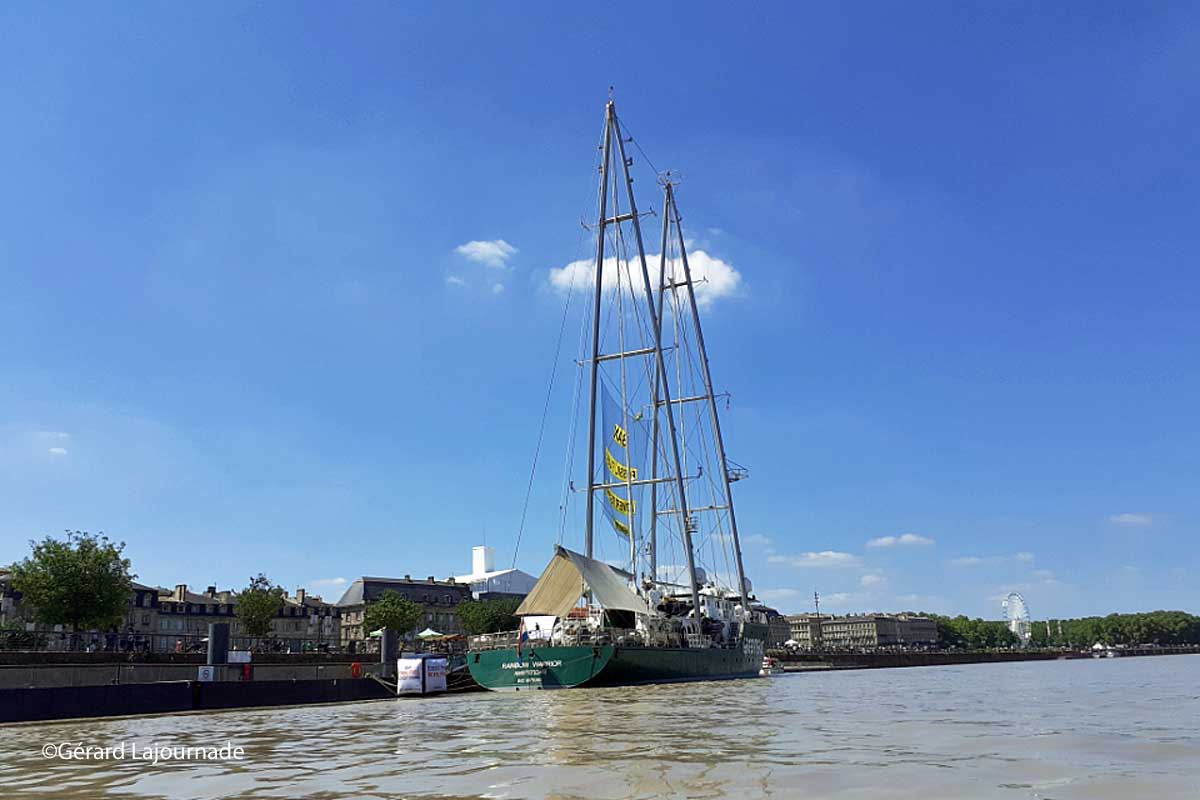 En 1985 le Rainbow Warrior était le navire amiral de Greenpiece et son activité essentielle consistait à aller gêner les essais nucléaires sur l’atoll de Muruora dans le Pacifique et accessoirement à Fangatofa. Le navire présent dans le port de Bordeaux pour quinze jours est le Rainbow Warrior III car le Rainbow Warrior I fut perdu corps et bien après avoir été coulé dans le port d’Auckland en Nouvelle Zélande le 10 juillet 1985 soit il y a un peu plus de trente sept ans suite à une action des services secrets français. A cette époque l’affaire fit grand bruit car les agents ayant montés l’opération furent pris au piège suit à une succession de malchances montrant peut être que l’opération avait des chances d’avoir été montée un peu à la hâte car le temps pressait et il fallait protéger la campagne de tirs prévus à cette époque. Les essais dans le Pacifique s’arrêteront en 1996 sous la Présidence de François Mitterrand qui avait donné son feu vert à son Ministre de la Défense Charles Hernu pour cette "combinaison boiteuse". L’affaire fit grand bruit à l’époque et ébranla les relations diplomatiques entre la Nouvelle-Zélande et la France pendant un petit moment. Pour ceux qui s’intéressent à cette affaire elle est remarquablement décrite et détaillée sous ses différents aspects et ses petits arrangements dans Wikipédia, rien n’y manque à consulter directement ici