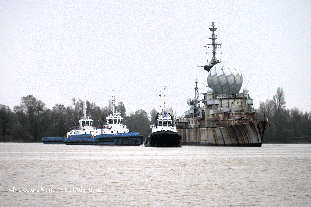 La coque du Suffren a donc quitté Toulon le 4 octobre dernier et est arrivée à Bordeaux le vendredi 24 novembre, après deux escales à Lisbonne puis à Bilbao, imposées par les conditions météorologiques très dégradées et peu compatibles avec un remorquage en sécurité de la coque car l’engin peut facliment dérver n’ayant plus de propulsion propre. Dans les mois qui vont suivre, arriveront de manière échelonnée au fur et à mesure de la place laissée libre les ex-Meuse, Jean de Vienne, Cassard et Montcalm pour Toulon puis deux coques venant de Brest - l’ex-Albatros, l’ex-Georges Leygues - et enfin une coque en provenance de Lorient, l’ex-d’Entrecasteaux. Cette filière est le constat d’une nécessaire réindustrialisation de l’économie française comme cela a été démontré à l’aune de la crise dela Covid et l’évolution vers le tout électrique avec la nécessité de reprendre en main un certain nombre de fabrications.