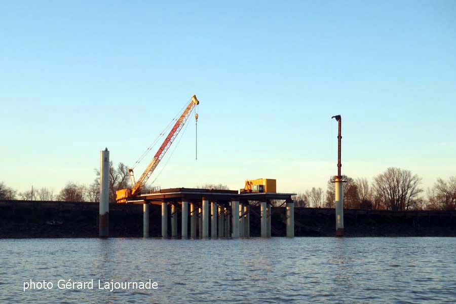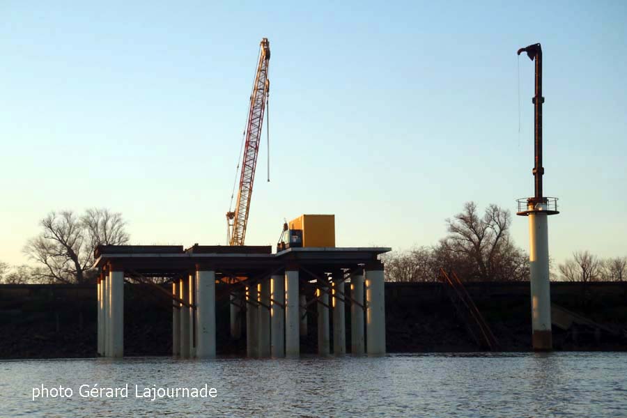La première phase du terminal de Grattequina est en voie d’achèvement et notre envoyé spécial sur le fleuve Gérard Lajournade a suivi l’évolution des travaux. Le terminal devrait être opérationnel sous huitaine et ainsi les délais seront tenus pour permettre à Astria de commencer la livraison des pâles d’éolienne via le port de Bordeaux. Le projet ne devait voir le jour qu’en 2015, mais sous la pression des évènements, il a pris 3 ans d’avance et la phase 2 va être enclenchée, c’est ainsi un espace portuaire qui revit car il a été en activité jusqu’en 1950.