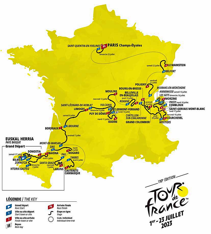 Déclenché au Pays Basque pendant deux jours il accoste à Bayonne aujourd’hui pour aller affronter les Pyrénées et de venir jusqu’à Bordeaux vendredi avant de traverser la France d’Ouest en Est pour rejoindre les Alpes autre passage obligé du TDF.