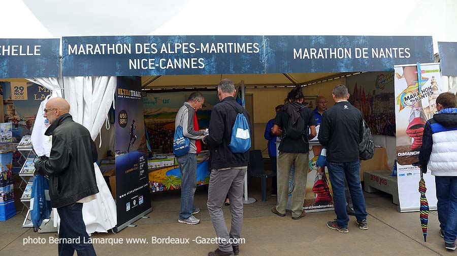 Les files d’attente sont déjà longues pour retirer dès vendredi matin les dossards pour les différentes épreuves. Il y a plus de 19.000 inscrits sur l’ensemble des épreuves du programme. On peut aussi se documenter sur un certain nombre de marathons dont le plus proche est celui du Médoc et le plus éloigné celui de Québec.