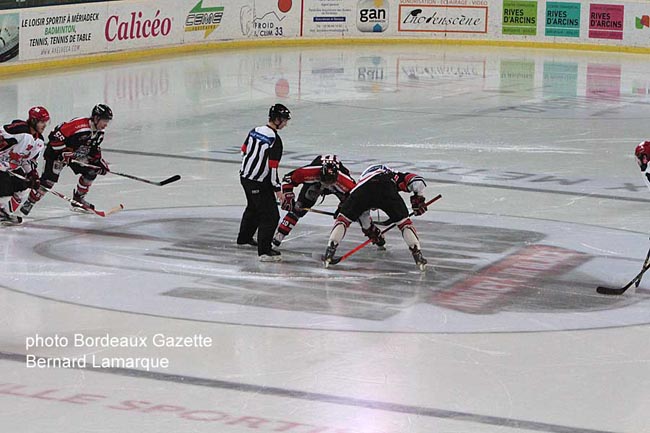 Les Boxers pour rester dans l’allure avant d’attaquer les play-downs ont conclu ce match avec Neuilly sur Marne qui évolue en Division 1, après avoir fait un passage en élite, division 1 dans laquelle évoluait les Boxers la saison passée et les Nocéens y occupe la cinquième place. Pour cette rencontre manquent à l’appel dans les rangs des Boxers Nicolas Besch mis au repos en prévision des joutes futures, ainsi que Jean-Christophe Gauthier, blessé au bas du corps, et le talençais Gautier Lafrancesca, blessé au haut du corps par contre Peter Valier absent face à Briançon, dernier match de la phase régulière, faisait son retour. Après un premier tiers temps équilibré qui s’est terminé sur le score de 1 à 1 les nocéens ayant ouvert la marque il a fallu attendre la réaction des Boxers qui sont revenus au score pour terminer ces vingt première minute à égalité. Le second tiers temps s’est déroulé suivant un scénario identique avec les visiteurs qui marquent et les Boxers qui reviennent à 2 à 2 pour terminer le second tiers temps à égalité. C’est dans le dernier tiers temps que tout va se jouer, ce dernier tiers temps qui a si souvent vu s’envoler les espoirs des Boxers mais qui depuis quelques matchs donne satisfaction. Dans le droit fil des périodes précédentes ce sont les visiteurs qui reprennent le score pour mener 3 à 2 mais en ce troisième tiers temps les bordelais vont un peu haussé le ton pour revenir au score en premier lieu, puis à quelques instants de la fin glisser à nouveau le palet dans le but adverse pour remporter ce match de remise en train avant d’attaquer les playdowns dès samedi soir à 18 h 15 en recevant Les Ducs de Dijon.