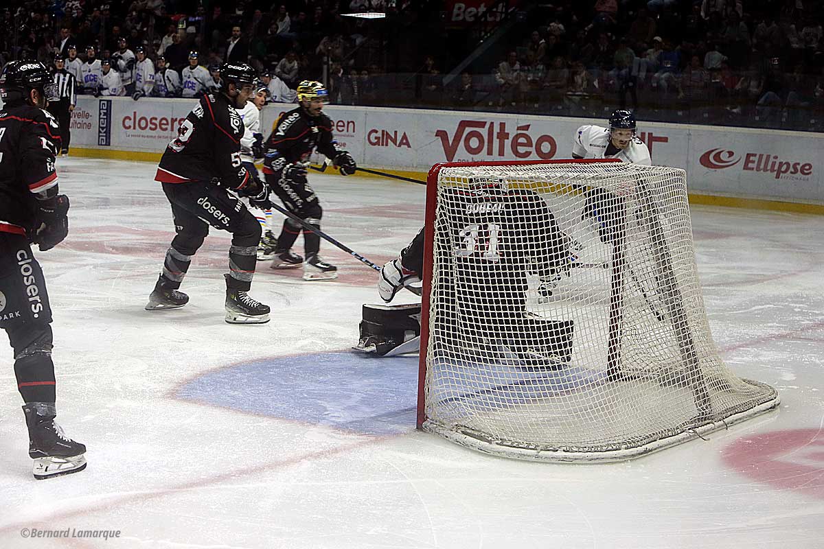 Au sortir de la glace on a vu des Niçois plutôt vexés de s’être fait battre car ils ont perdu leur troisième place et chutés deux fois à Meriadeck en quelques jours. Le match a été vigoureux en termes d’échanges cela allant même jusqu’à la boxe. Un Teemu Loiseau à Nice étant particulièrement agressif et toujours près à en découdre, il a soulevé des huées dans une patinoire chauffée à blanc pleine de 3 500 spectateur(e)s qui ont donné de la voix. La partie a très vite était engagée les Boxers inaugurant le score dès la troisième minute remettant cela trois minutes plus tard mais rapidement le jeu s’est équilibré avec des Niçois qui ont comblé une partie de leur retard avant la fin de la période. C’est le deuxième tiers temps qui a été le plus prolifique avec des Niçois revenant à égalité puis à nouveau les Boxers prenant le large pour mener un instant cinq à deux mais les visiteurs revenaient en partie au score à cinq trois avant la fin de la période.
