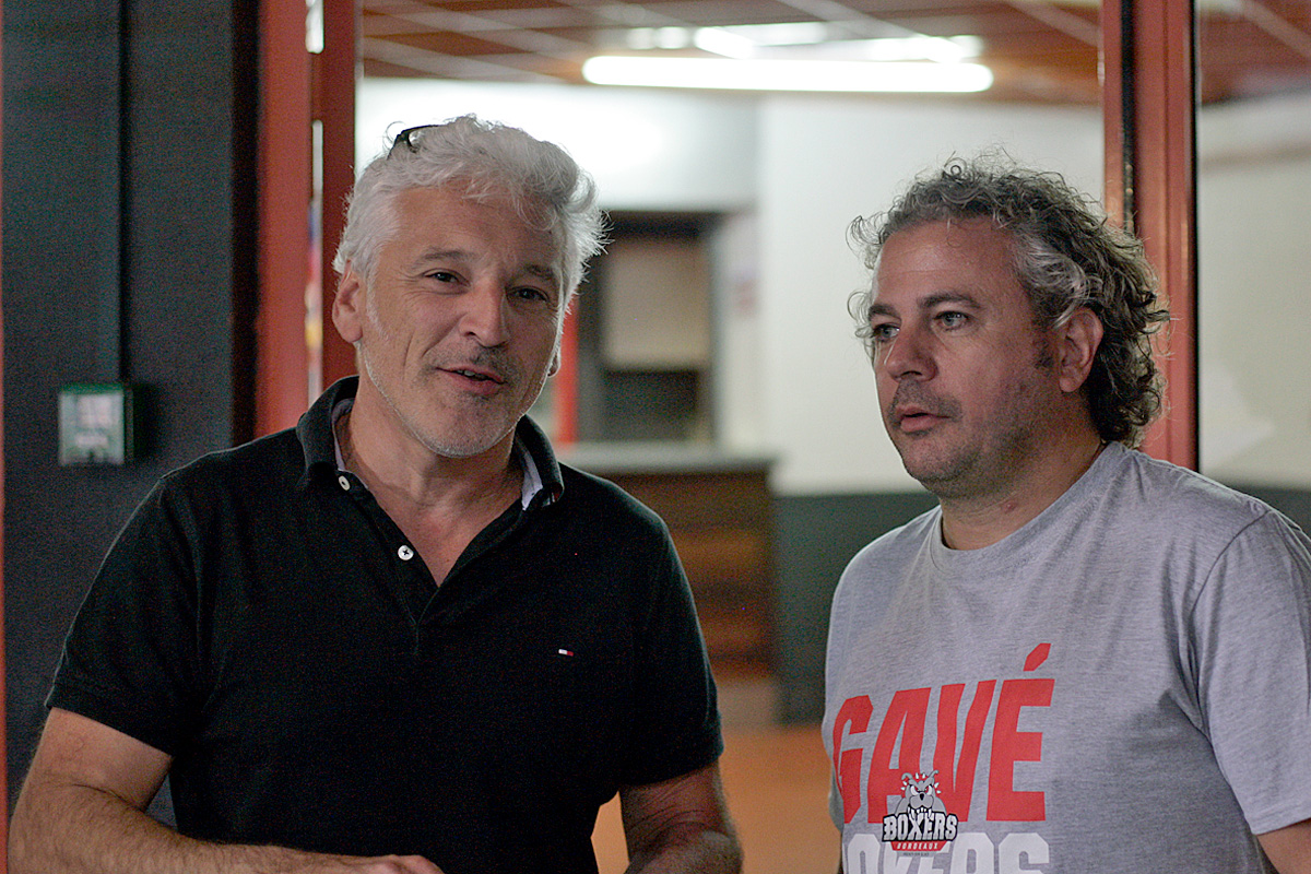 La patinoire est en train de se refaire une beauté et c’est ce qui explique que certains blocs soient restés fermés pour ce premier match à Meriadeck et c’est ainsi qu’on a vu longuement conversé au bord de la glace le Président des Boxers, Thierry Parinty et le directeur de la patinoire, Franck Boucher. Ce devrait être la saison du redressement total du club qui a été moins durement frappé que la saison passée et il reste quelques ajustements à faire mais d’après le président Parienty , c’est en bonne voie. Les Boxers de Bordeaux cherchent a se rapprocher de leur public et à gagner en notoriété car il est vrai que le Hockey a un peu de mal à percer à la télévision, mais cette année avec FANSEAT qui implante 7 caméras pour suivre les matchs on pourra avoir un meilleur suivi des rencontres pour ceux qui suivront les matchs sur cette chaîne.
