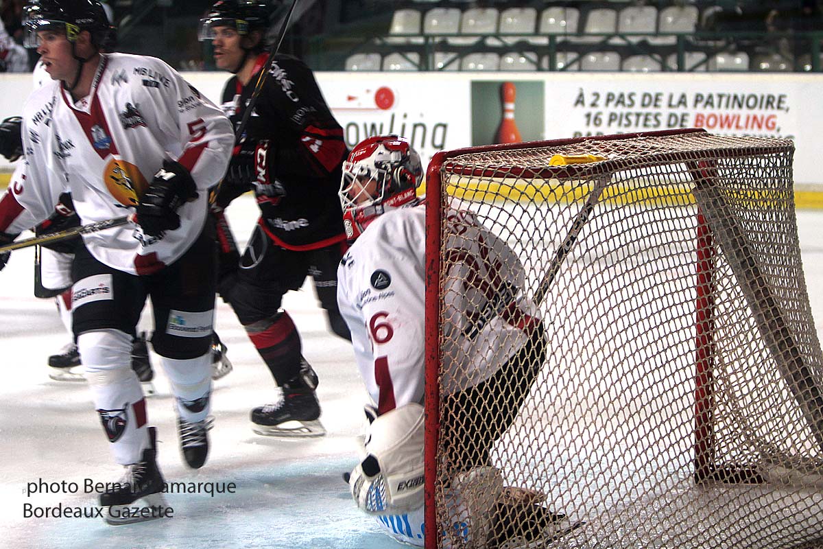 Les Chamoniards étaient à moitié rassurés en venant à Bordeaux car sur le papier Bordeaux reste un gros morceau mais ils ont mis un point d’honneur à faire "le match" et ils ont remporté une victoire somme toute méritée. Il faut souligner la prestation de leur gardien Richard Sabo qui a effectué 38 arrêts sur 39 tirs. Les Pionniers de Chamonix sont une équipe en reconstruction car il reste peu de joueurs de la saison passée. Il ne faut pas oublier que c’est le club doyen du hockey français et qu’il témoigne d’une longue histoire qui a du disputer les barrages de descente lors de la dernière saison mais qui reconstruit autour de canadiens et de jeunes espoirs français tout en sachant qu’on a seulement droit à onze joueurs étrangers. Les Boxers cueillis à froid à la première minute du match et peu en réussite sur leurs tirs de près ou de loin se sont inclinés sur le score de 3 à 1 face aux valeureux chamoniards après être revenus un moment à égalité dans le deuxième tiers temps. Bien sur le dernier but étant du à l’absence de Julien Junca absent de la cage ne peut rien se reprocher et la déception est d’autant plus grande qu’une victoire permettait d’effacer les 9 points de pénalité dont les Boxers ont écopé.