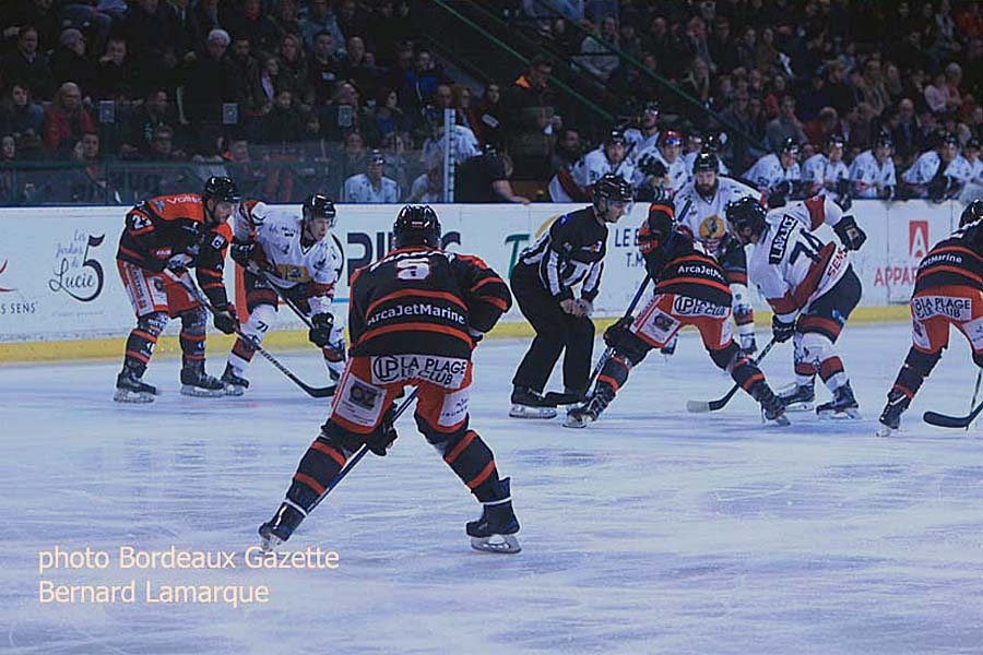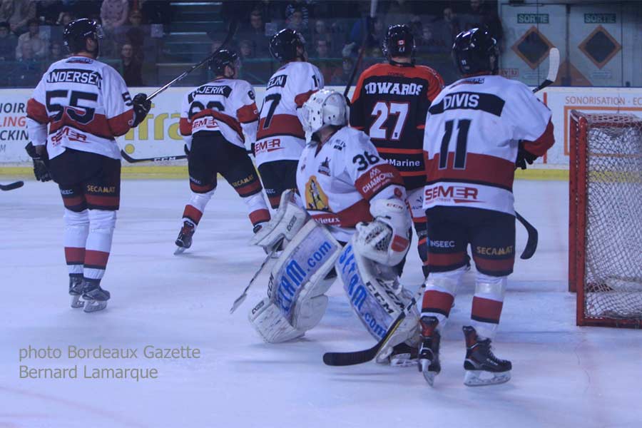 Pour cette ultime rencontre on retrouvait Clément Fouquerel dans la cage des Boxers et une équipe qui tourne bien en cette fin de saison, mais n’est-il pas judicieux d’arriver en forme en vue des playoff d’autant qu’en quart de finale les Boxers vont retrouver les Rapaces de Gap dirigés par Luciano Basile avec qui ils ont toujours eu des rencontres difficiles. En ce qui concerne la rencontre celle-ci n’a posé guère de problèmes aux Boxers sauf en première mi-temps où les chamoniards se sont bien défendus en procédant par contre attaques quand il pouvait récupérer le palet tant les locaux étaient dominateurs. C’est au bout de 15 minutes que les visiteurs ont commencé à céder et que Richard Sabol aller chercher le premier palet au fond de la cage. Le deuxième tiers temps sera sans problème pour les Boxers sauf qu’ils laisseront filer le blanchissage et le troisième à l’identique sans concéder le moindre but.