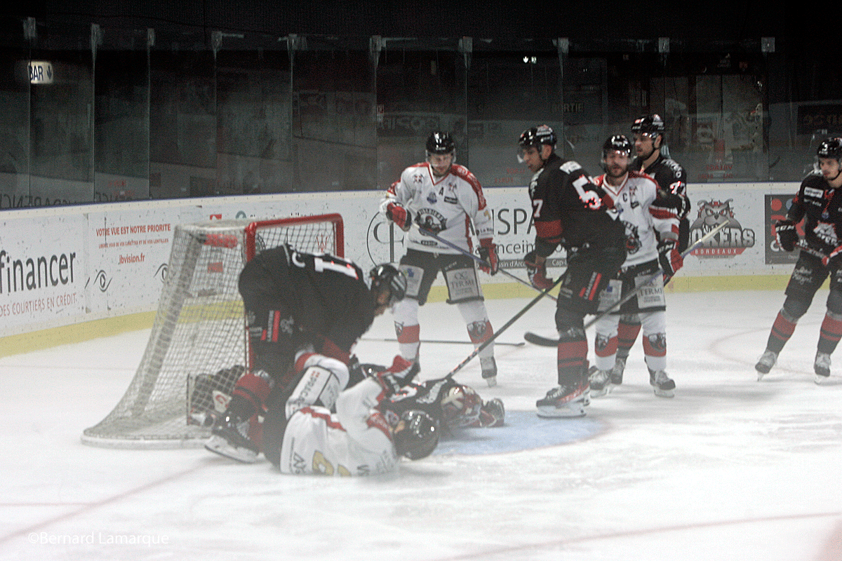 C’est durant le troisième tiers temps que le résultat de la partie c’est vraiment dessiné dans un contexte parfois houleux avec bagarre à cinq minutes de la fin, les locaux ont creusé l’écart dans un premier temps en ajoutant un but supplémentaire. Les visiteurs vexés ont alors procédé en faisant tourner les lignes sans arrêt dans la troisième période, pour tenter de troubler l’organisation des Boxers, mais ces derniers vont rester bien concentrés pour éviter de se faire rejoindre et vont ajouter un but supplémentaire. C’est Niklas Salo, le joueur le plus petit et le plus remuant de l’effectif des Boxers, qui va tuer le match par un superbe coup de crosse alors que les visiteurs jouaient la cage vide pour tenter de revenir au score. C’est devant plus de 2 200 spectateurs que les Boxers ont emporté cette rencontre qui a valu une étoile à Spinozzi, Valier et Jevpalovs. Les Boxers sont toujours quatrième après cette dixième journée de Ligue Magnus, ils vont prendre le chemin de Briançon ce vendredi avant de recevoir Nice à Mériadeck et ils comptent bien laver l’affront du cinq à un encaissé au Palais des Sports Jean Bouin.