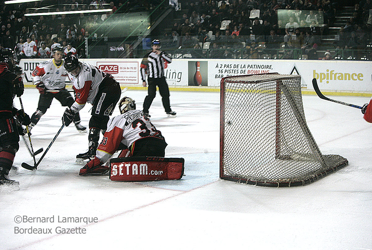 Le match a commencé avec quelques minutes de retard suite à la cage côté Est qui été mal arrimée et la cage côté Ouest était, elle, occupée par Clément Fouquerel reprenant sa place après le match à Rouen. D’entrée de jeu on a senti des Boxers survoltés voulant à tout prix emballer le match pour remporter à nouveau la victoire. victoire et s’ils ont ouvert le score les visiteurs sont revenus avant qu’à nouveau les Boxers reprennent la main pour terminer le premier tiers temps devant. Dans le deuxième tiers temps les Aigles ont un instant recollé avant qu’Alexandre Mulle auteur d’un doublé ne donne l’avantage aux locaux pour terminer encore devant. C’est dans le troisième tiers temps que les Boxers ont assis leur victoire en envoyant par deux fois le palet au fond de la cage, leur permettant de clore la partie sur le score de 5 à 2. Maintenant il va falloir penser au déplacement à Grenoble de mercredi après avoir digéré le réveillon.