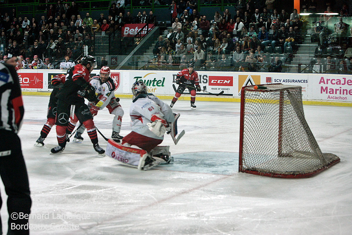 Bordeaux 19 min 59 Mathias Arnaud (en infériorité numérique) (cage vide) (Maxime Moisand, Julien Guillaume) 6/4