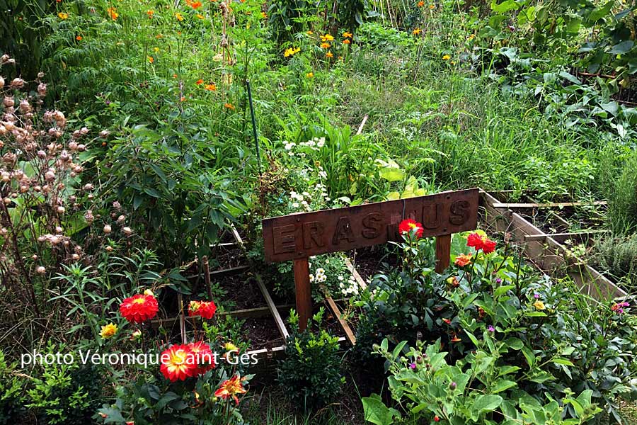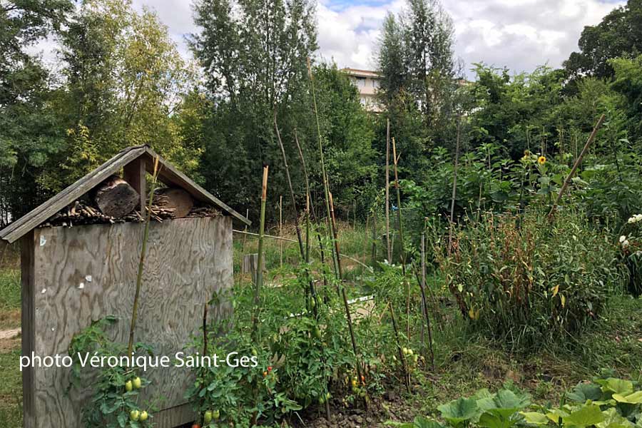Une fois visitée la Maison du jardinier, poussez le pas vers le jardin partagé du parc Rivière, havre de quiétude offrant des couleurs chatoyantes et de beaux légumes sains. Une trentaine de parcelles de 6 à 9 m2 composent ce potager travaillé par des jardiniers (femmes et hommes), ou des associations ou des écoles du quartier. En effet, le potager du parc Rivière est un des jardins partagés de la ville de Bordeaux, créés à l’initiative d’habitants qui souhaitent se retrouver pour jardiner ensemble, partager des moments de convivialité et échanger des savoir-faire ou des plants ou des semences. Ainsi, l’association ERASMUS cultive une grande parcelle permettant l’accueil d’étudiants venus du monde entier, via le programme ERASMUS MONDE. « C’est un jardin qui parle, lieu de vocabulaire, de langage et d’échanges », nous dit la Présidente. Les étudiants s’impliquent dans l’entretien du jardin, ainsi cette saison un étudiant mongol arrose alors que d’autres apportent les graines de leur pays. Ils sont fiers et envoient des selfies de leur production à leurs proches.