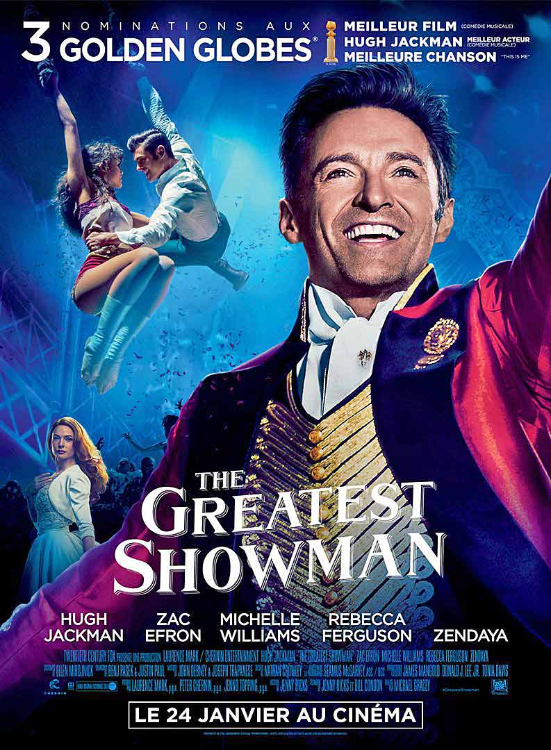 Synopsis : The Greatest Showman célèbre la naissance du show-business et l’émerveillement que l’on éprouve lorsque les rêves deviennent réalité. Inspirée par l’ambition et l’imagination de P.T Barnum, voici l’histoire d’un visionnaire parti de rien qui a créé un spectacle devenu un phénomène planétaire.