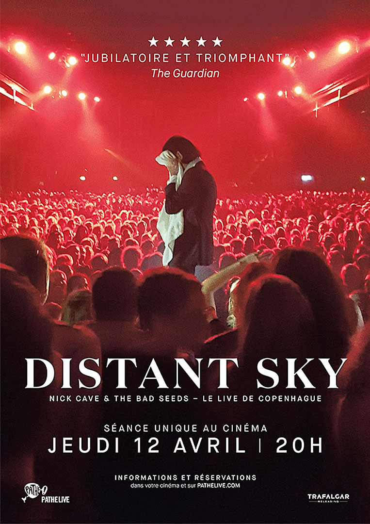 Distant Sky, l’incroyable show de Nick Cave & The Bad Seeds, est filmé au Royal Arena de Copenhague. Interprétant les titres magiques du nouvel album Skeleton Tree ainsi que les incontournables du groupe, leur première tournée en trois ans a provoqué des réactions emballées des fans, des critiques et de la profession. Cette excellente réception leur a permis de creuser un peu plus l’intimité profonde que le groupe entretien avec son public, aux quatre coins du monde. Cette tournée mondiale a également été pour eux l’occasion d’obtenir quelques-unes des meilleures critiques de leur carrière.