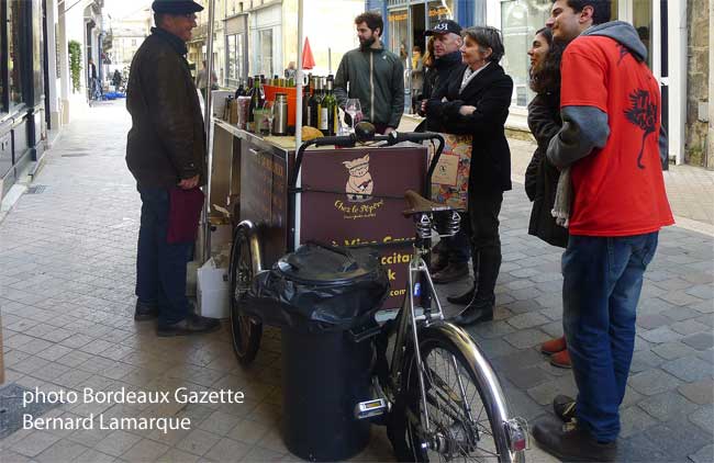Alain Juppé est venu inaugurer cette première manifestation qui se tenait à proximité de sa mairie et par chance la rue Bouffard a bénéficié d’une accalmie ensoleillée dans ce printemps qui ressemble beaucoup à un automne. Les commerçants de la rue, ont animé la journée avec des comptoirs éphémères avec l’ambiance ethnique de Caban Indigo, l’épicerie Ô bon terroir, Bordeaux Shop, les bouillons de Charles Le Tisanière d’Oc, les bijoux de Catherine Martineau, la librairie Tal, pour n’en citer que quelques uns. Au milieu de la cour sublime du Musée des Arts Décoratifs et du Design, Marilyne Goguet du restaurant Coté Cour avait concocter un buffet gourmand. Partenaires de la manifestation Vecto, distributeur France des bimoteurs et triporteurs Christiania Bikes, l’Imprimerie Dalbos et le studio d’identité visuelle Studio Neige.