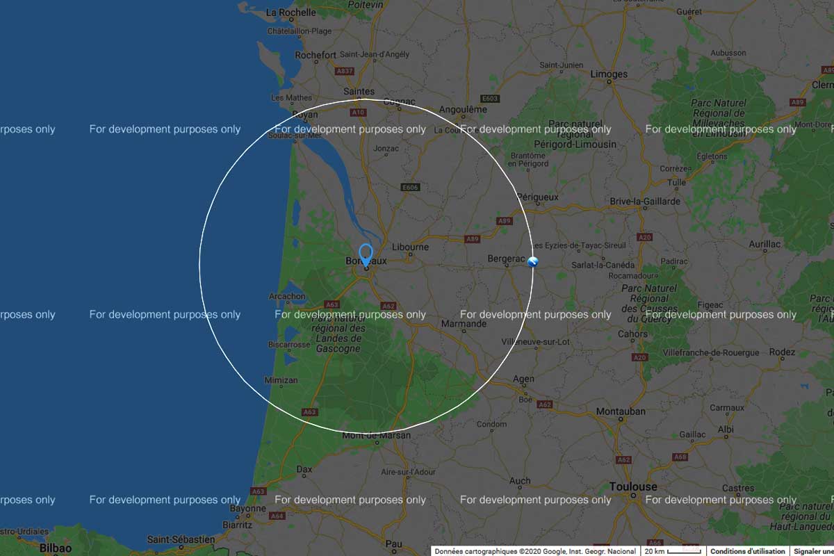 - 100 kilomètres autour de Bordeaux laissent des possibilités mais il n’est pas précisé si c’est à vol d’oiseau !