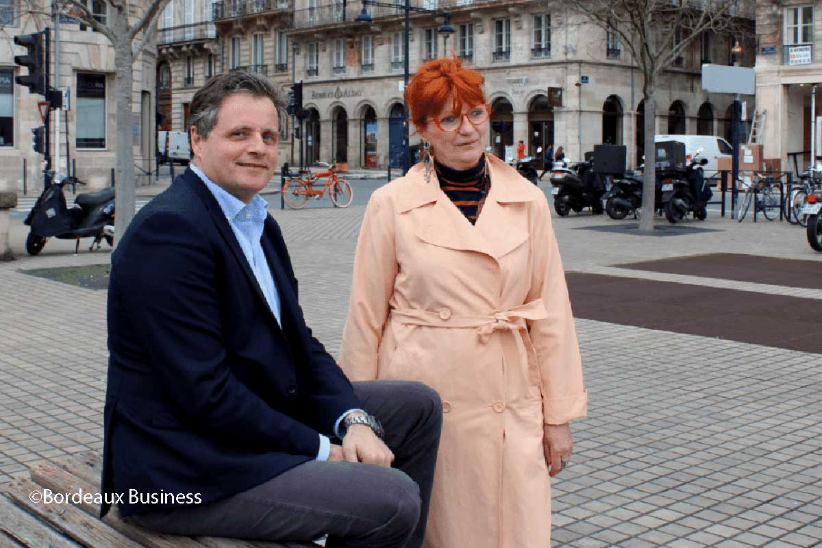 - Michel Durrieu et Régine Marchand, Présidente du Comité Régional du Tourisme place Paul Doumer à Bordeaux