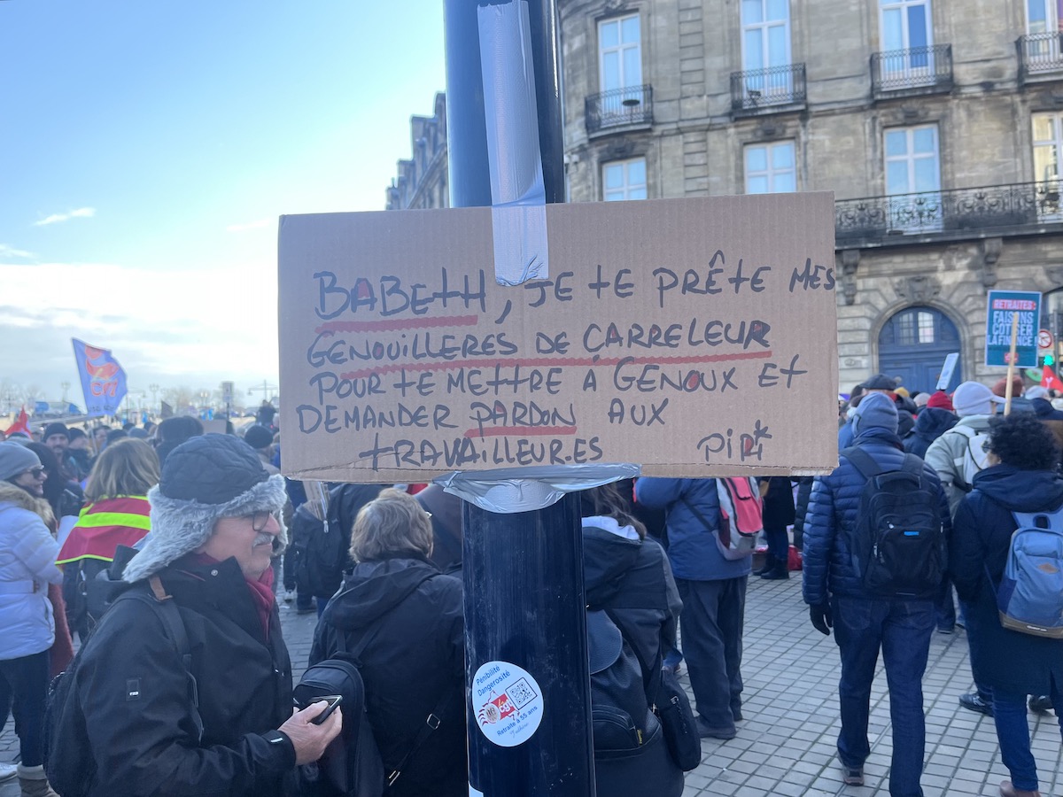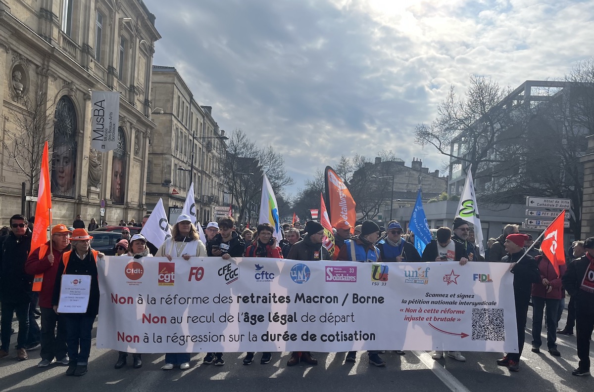 Malgré les vacances scolaires ainsi que le retour du froid, ce sont tout de même quelque 50 000 personnes, d’après l’intersyndicale, qui se sont donné rendez-vous à 12 heures Place de la Bourse. En compagnie de Pierre Hurmic, le maire écologiste largement engagé dans ces protestations, le vaste cortège a su se faire entendre. Et si les explosions d’artifices ont tenté d’imposer leur loi, c’est avec une bienveillance sur fond de fanfare que les festivités se sont déroulées. Au final, selon la préfecture, 9.500 Bordelais munis de tuniques rouges et jaunes ont arboré fièrement leurs ambitions avec la volonté de ne « rien lâcher ». Un chiffre moins conséquent que les 19 et 31 janvier, mais pour autant significatif. Côté convictions, de plus en plus d’actifs concernés par les travails pénibles se sont manifestés, avec le sentiment d’être « mis sur le bas-côté » et la peur que cette pénibilité soit trop durable dans le temps.