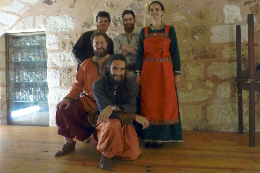 - Membres de l’association Ragnarock posant en tenues vikings confectionnées lors des ateliers couture