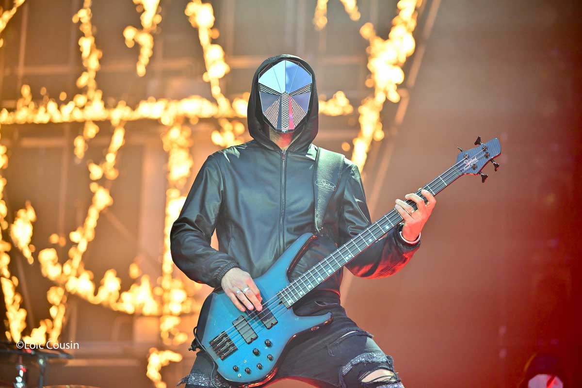Un concert qui affichait complet depuis plusieurs semaines et qui était attendu de toute une communauté, tant le groupe voulait faire de cette tournée un évènement avec flammes, confettis, lumières, tubes, show, et un masque géant sur scène. Comme dirait l’autre : « Il y a ceux qui y étaient…et les autres ». Et effectivement les chanceux présents se souviendront longtemps de ce passage remarqué où ont pu retentir avec un très très bon son (on sait que ce n’est pas tout le temps le cas dans les stades), les titres du dernier album comme « Will of the People », « Compliance » et « We are the fucking fucked », dans des nuages de flammes, des miroirs géants qui descendaient du plafond, un stade illuminé par les flashs des téléphones sur le titre « Verona », et le masque géant articulé qui servait également d’écran.