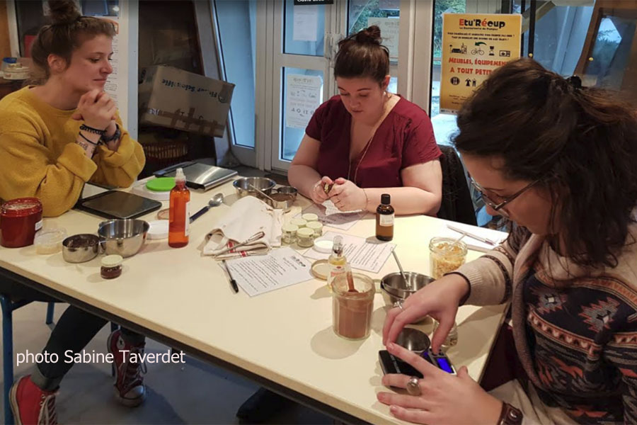 Basée à Doyen Brus près du campus, Etu’Récup se définit comme une ressourcerie : son activité principale se fonde sur une remise en service des objets. Même si le public ciblé est davantage étudiant, c’est sur plus de 400m² que la boutique s’ouvre à tous : déco, meubles, livres, électro-ménager, vélos… Tout y est pour aménager un intérieur. Et les prix sont cassés : au détour d’une allée, on craquera sur une table à seulement 8e ! Active sur tous les fronts de sensibilisation, l’association est également en lien avec l’international : les étudiants Erasmus devant voyager léger se présentent en demandeurs majoritaires mais également donateurs après un semestre d’étude dans la capitale girondine. L’adhésion est unique et d’un minimum dérisoire de 2e pour l’accès à la boutique mais aussi aux ateliers. L’équipe salariée épaulée par une armée de bénévoles met en avant le côté participatif grâce aux échanges de compétences. C’est ainsi qu’après les ateliers textile et couture, mécanique, électronique, vélo et bois : l’atelier cosmétique fait son entrée régulière dans la liste de propositions d’Etu’récup !