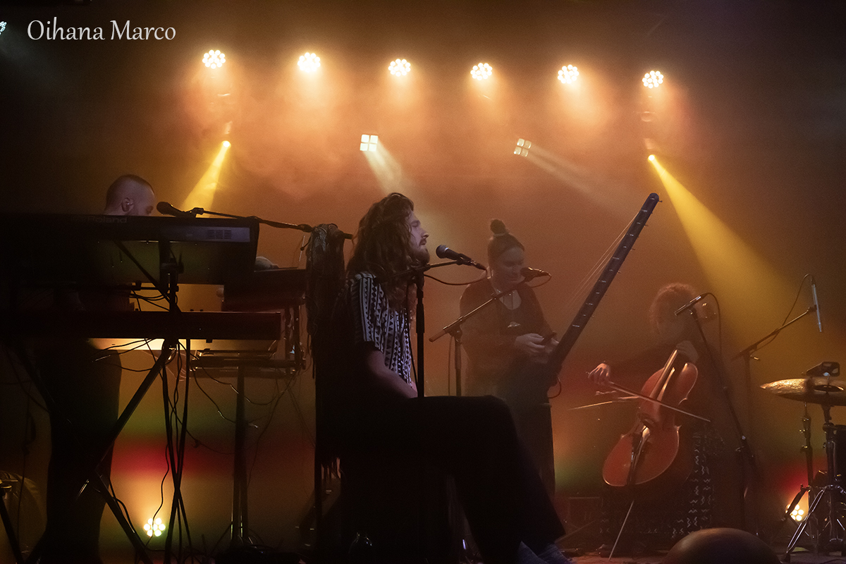 La soirée s’est ouverte avec LA’AU Project, duo formé par Paul Faugère (guitare et voix) et Gaïa Jeronimo (violoncelle et chant). Leur univers ethno-folk-fusion a immédiatement plongé le public dans une écoute attentive : des sonorités organiques, des harmonies proches de la nature, une sensibilité presque chamanique.