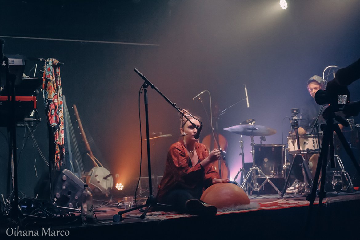 Entre deux morceaux, elle ne parle pas pour combler le silence, mais pour le prolonger autrement. Sa parole est une respiration, une extension du chant.