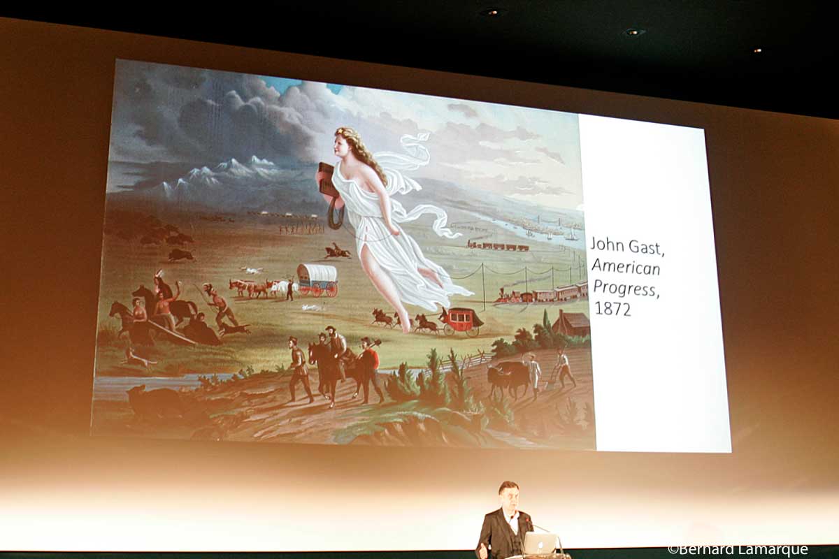 Cette inauguration a permis aux spectateurs de suivre une magnifique conférence de Sylvain Veynayre qui est un historien français, spécialiste du XIXᵉ siècle et de l’histoire des représentations, professeur d’université, il est également essayiste et scénariste de bande dessinée et c’est sous le titre « Où va le XIXème siècle ? » qu’il nous a parlé de ce siècle en s’appuyant sur un tableau de John Gast, "American Progress" peint en 1872. Il a détaillé son propos à partir de chaque éléments figuratif de ce tableau dans lequel le soleil se lève à l’Est et le déplacement se fait vers l’Ouest évoquant ce mouvement de déplacement à la conquête de l’Ouest accompagné des diligences et surtout du chemin de fer qui reste le grand moyen de déplacement de ce siècle ayant inspiré ce titre du Festival Le XIXème siècle à toute vapeur. Après avoir décrit tout l’apport de ce XIXème à notre civilisation transformant les rapports humains et la naissance du monde ouvrier qui va modifier les relations avec la bourgeoisie et le monde paysan inspirant des mouvements philosophiques nouveaux avec l’apparition des socialistes utopistes et surtout la prose de Marx qui va profondément influencer les positions des uns et des autres avec deux révolution supplémentaires en France (1830 et 1848), un coup d’Etat (1852) et un premier conflit avec le voisin allemand. On peut laisser la parole à Jean-Noël Jeanneney en forme de conclusions : Les progrès de la science et des techniques portant, avec la Révolution industrielle, d’impressionnantes ambivalences : à la fois des chances d’émancipation par rapport au poids atavique des travaux quotidiens et l’émergence d’un prolétariat soumis, corps et âmes, aux plus impitoyables duretés pour ce siècle qui a avancé l’horloge de l’histoire.