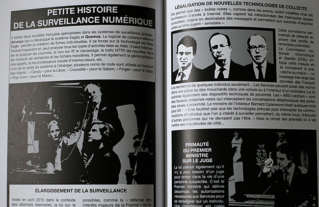 En avertissement de l’ouvrage vous trouverez le propos suivant : "Toute ressemblance avec des situations existantes ne saurait être que fortuite, à moins qu’elle ne résulte de la simple application du programme du Front National". En feuilletant et en lisant cette bande dessinée vous apprendrez la filiation qui unit "Ordre Nouveau " et le "Front National" ainsi que le rôle tenu par François Duprat. Il faut lire François Durpaire dans la bande dessinée paru en novembre 2015 "L’hiver dernier, j’ai acquis la conviction que tout était désormais possible. j’ai longuement étudié le programme du Front National. Et j’ai imaginé un récit de politique fiction sur « les cent jours de Marine Le Pen à l’Elysée », qui s’est transformé en BD politique. J’ai aimé l’idée d’un document graphique, pour toucher le plus grand nombre et pour donner à voir et à penser. La rencontre avec Farid Boudjellal a fait le reste. Il ajoute quelques lignes plus loin "Mon projet avec ce livre est de montrer, de la manière la plus précise possible, l’enchaînement qui suivrait l’arrivée du Front National au pouvoir. L’objectif de tout candidat est de projeter dans l’imaginaire des citoyens un avenir radieux. A nous de proposer des projections alternatives, plus réalistes. C’est ce que nous avons fait... en appliquant le programme du FN". Ce livre est intéressant car il nous apprend un certain nombre de faits et se projette bien, mais il n’aborde pas le problème de la majorité à l’Assemblée Nationale car même si aujourd’hui il parait possible que cette élection soit possible car entre la"volée" qu’avait pris Jean-Marie Le Pen en 2002 face à Chirac et l’écart au second tour des régionales 2015, le différentiel s’est sérieusement pincé. La mise en valeur de certaines lois mises en place suite aux attentats pose la véritable question de la liberté d’expression avec la surveillance électronique et de ce que pourrait en faire un gouvernement peu scrupuleux.